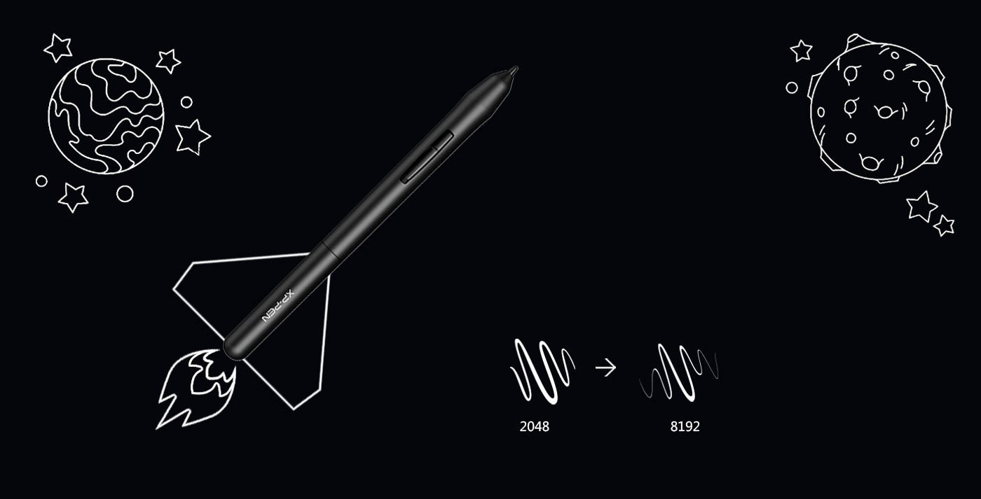 8192 úrovní tlaku mu dává výborné parametry pro úpravy, navigaci a tvorbu s celou paletou štětců a per.